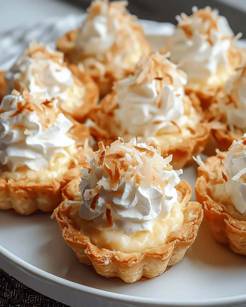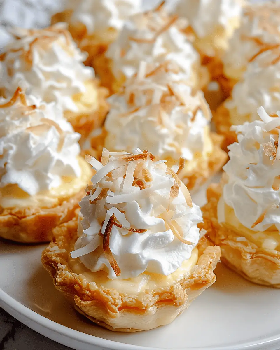Absolutely! Mini coconut cream pies are perfect for making ahead of time. You can prepare the crust and filling a day in advance. Just keep the filling separate until you’re ready to serve; this prevents the crust from becoming soggy. Once you’re ready to indulge, simply fill the crusts, top with whipped cream, and garnish with shredded coconut just before serving for that fresh touch.