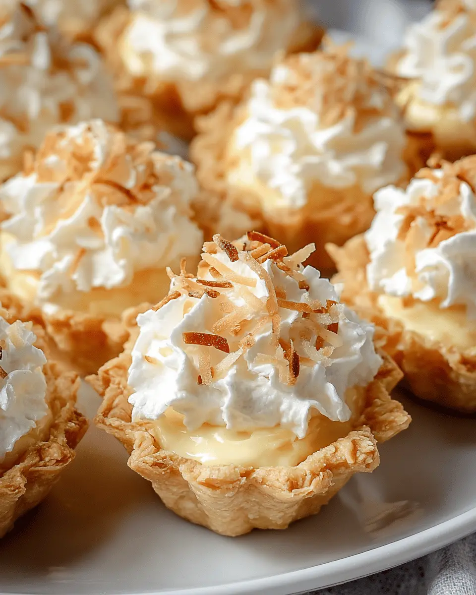 Indulge in these delightful mini coconut cream pies, perfect for satisfying your sweet tooth at home.