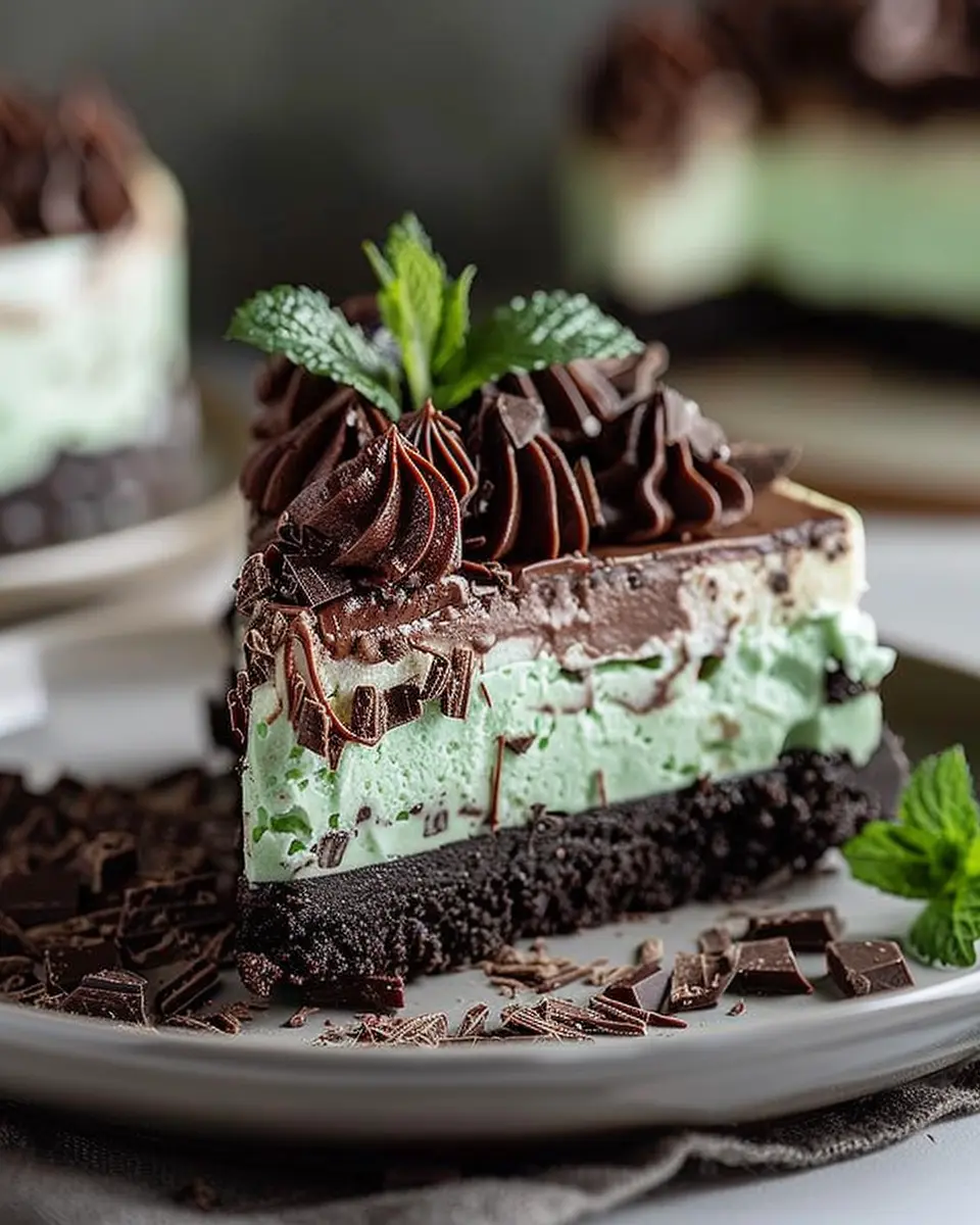 • Garnish with Fresh Mint: For a stunning presentation, top your mint chocolate cheesecake with chocolate shavings and fresh mint before serving.