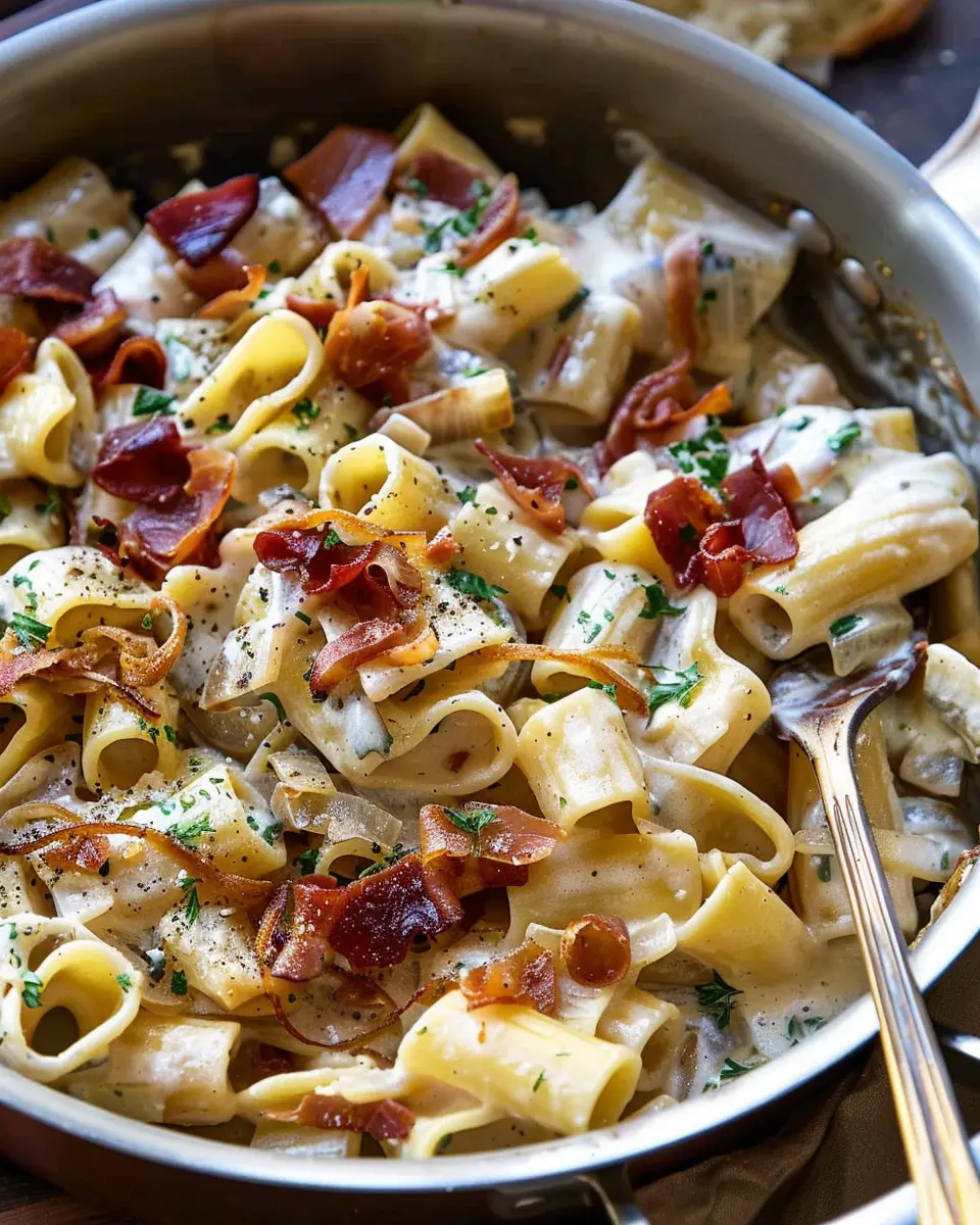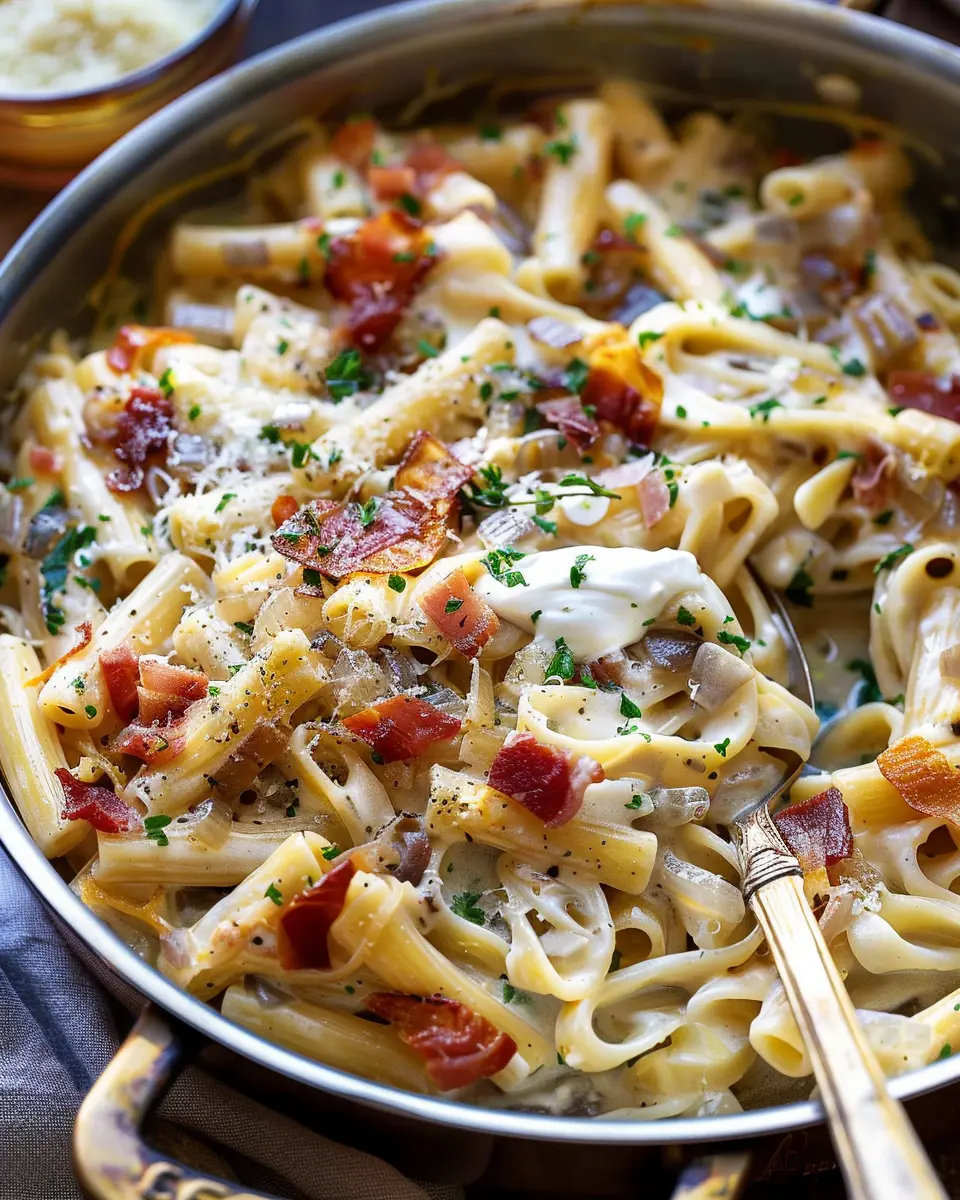 Furthermore, this dish is not just hearty; it’s nourishing too. With the right blend of ingredients like pasta, onions, and savory turkey bacon, you’re not just preparing a meal; you’re creating an experience that warms the heart and fills the stomach.