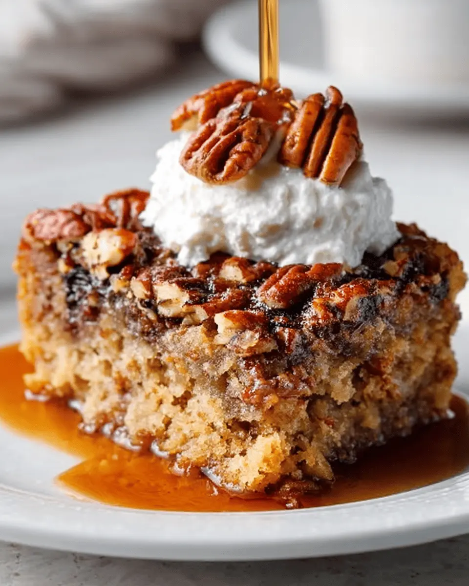 First impressions matter, right? Enhance the visual appeal of your Pecan Pie Dump Cake with simple garnishes. Top with a sprinkle of chopped pecans for added crunch, or drizzle some caramel sauce over each slice for that irresistible finish. Fresh mint leaves can also add a pop of color and a refreshing note.