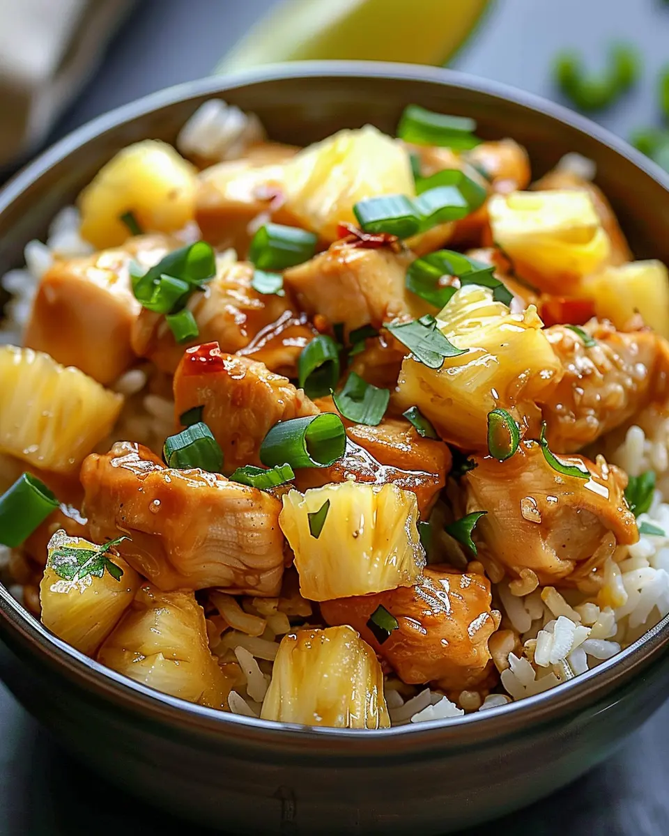 A delicious combination of chicken, pineapple, and rice that’s perfect for family dinners.