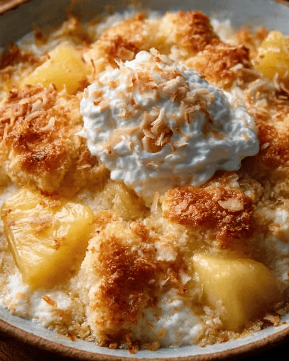 Pineapple Cream Cheese Cobbler is a delightful dessert that combines the tropical sweetness of pineapple with the rich creaminess of cheese, all encased in a buttery cobbler topping.