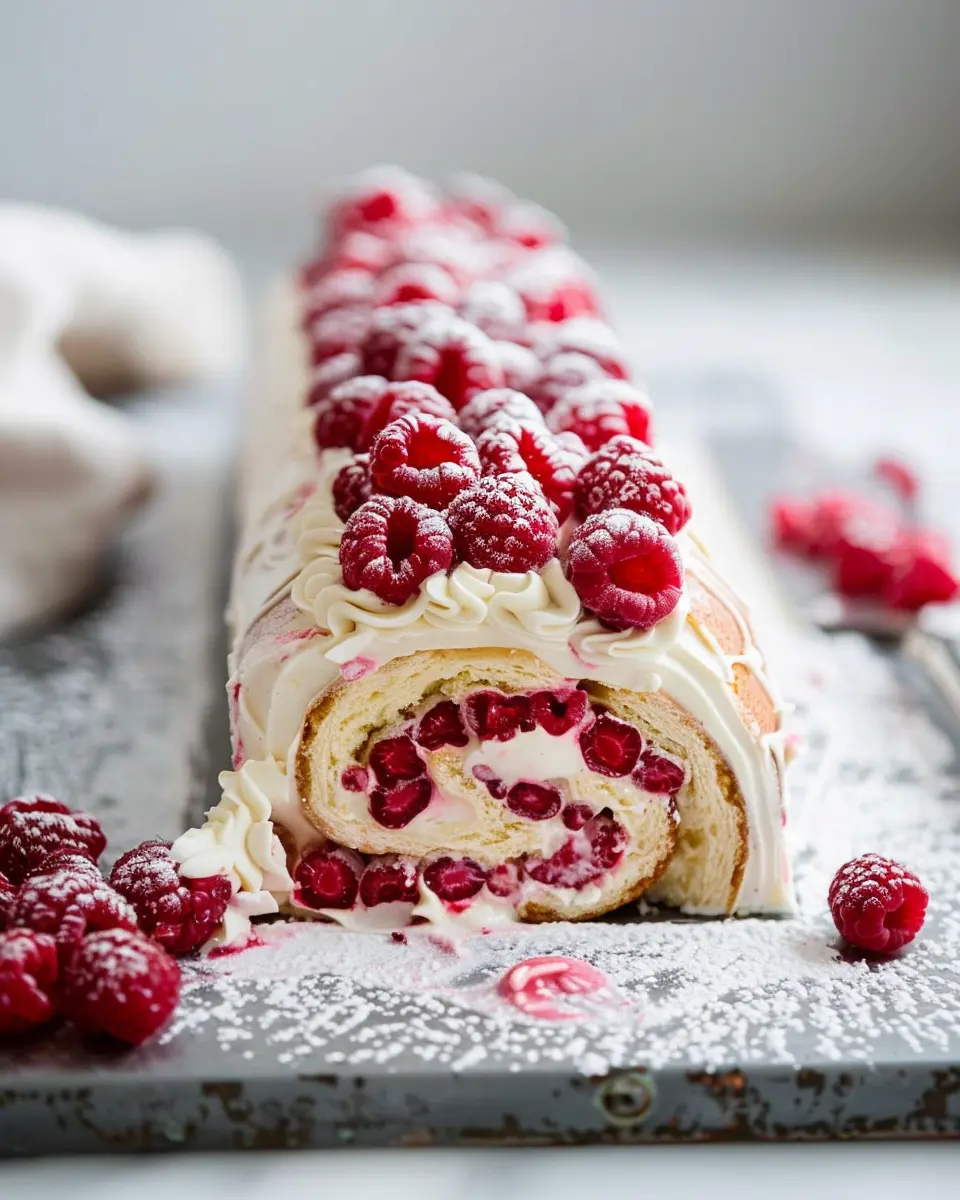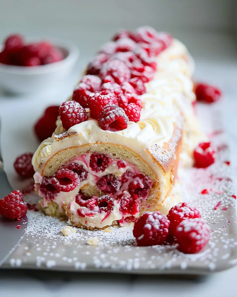 Elevate your raspberry roll cake presentation by serving it on a stylish platter, dusted with a light sprinkle of powdered sugar for a touch of elegance. Consider adding fresh raspberries or a mint leaf garnish for a pop of color. For an interactive serving idea, slice the cake into thin rolls and place them on individual dessert plates, drizzling with a simple berry sauce made from puréed raspberries blended with a bit of honey or sugar.