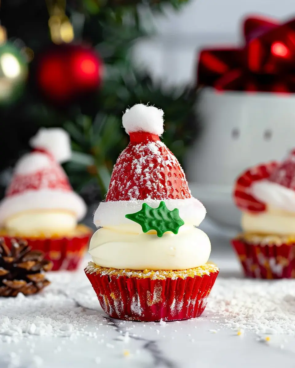 These toppings bring your Santa Hat Mini Cheesecakes to life and make them a festive focal point for your holiday gatherings.