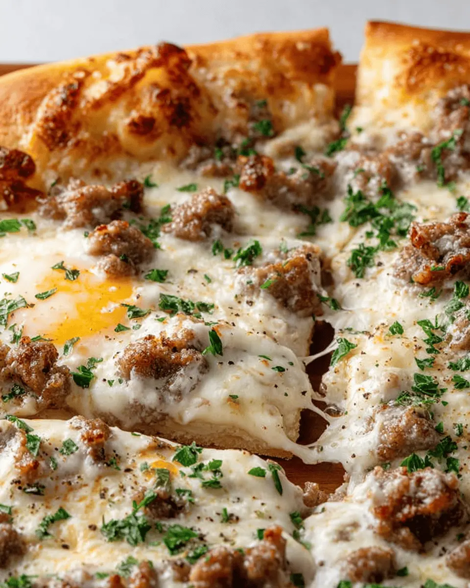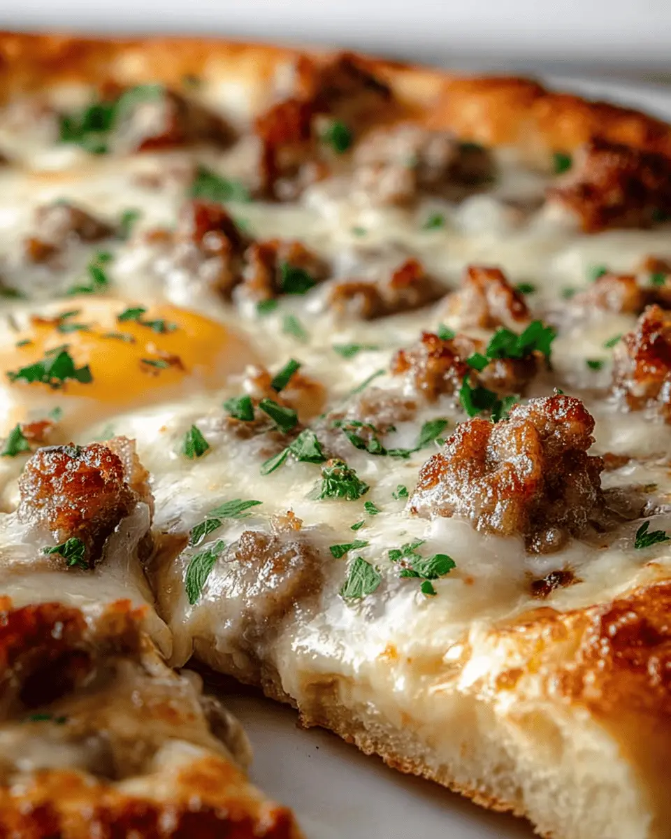 PrintSausage Gravy Breakfast Pizza: Indulgent Twist with Turkey Bacon
