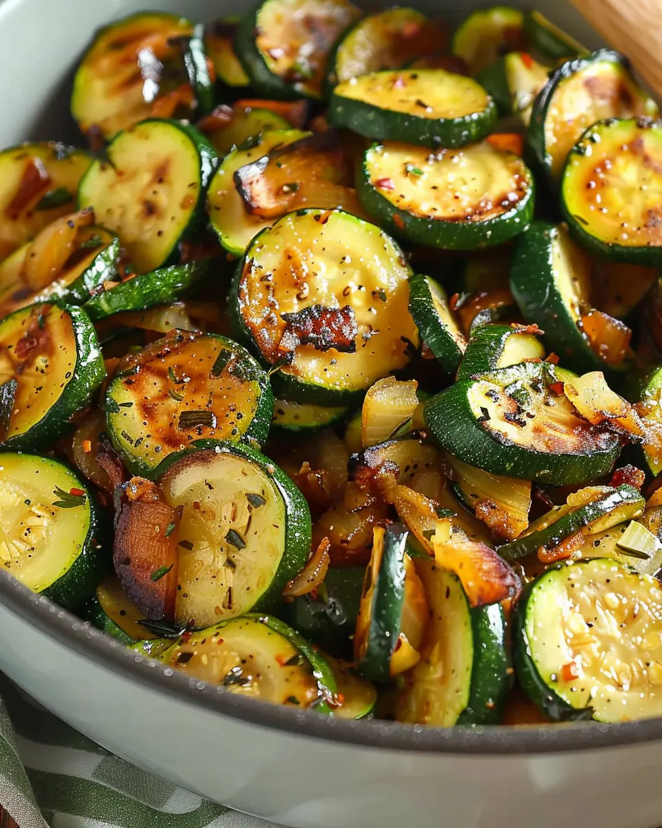 Sautéed Zucchini: Easy Recipe with Turkey Bacon and Fresh Herbs