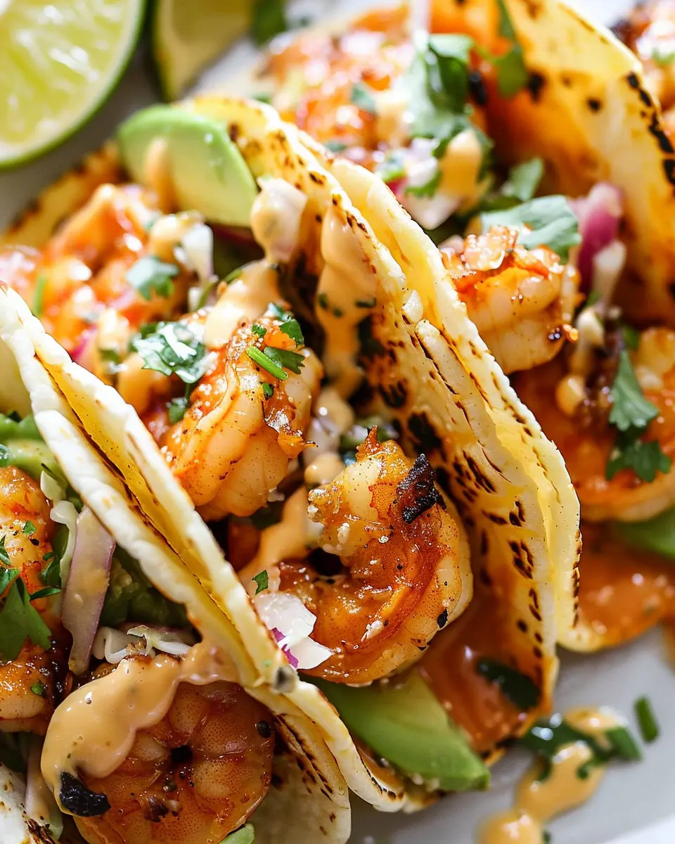 - Assemble the tacos by placing shrimp on a tortilla and topping it with creamy slaw.
