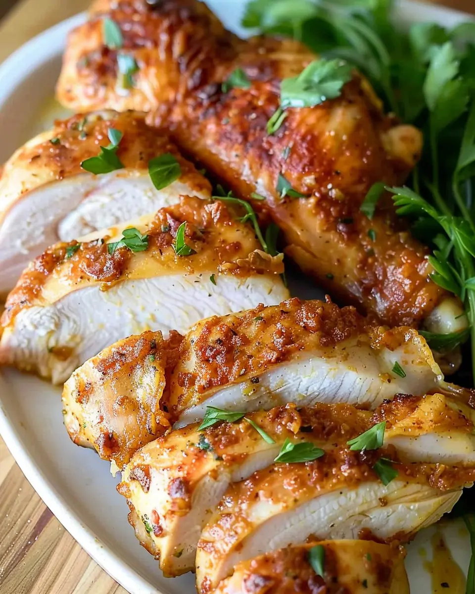 A simple oven baked chicken recipe that is juicy and perfect for a family dinner.