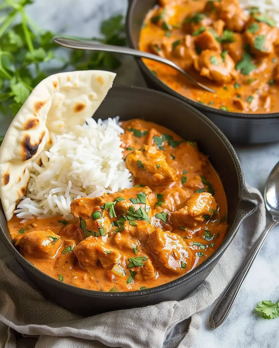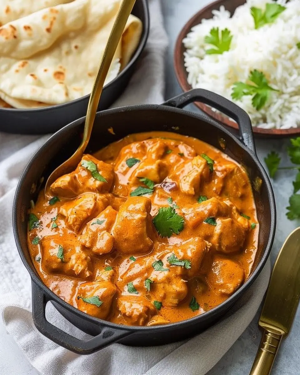 Enjoy a rich and creamy butter chicken dish cooked effortlessly in your slow cooker, perfect for a cozy dinner.