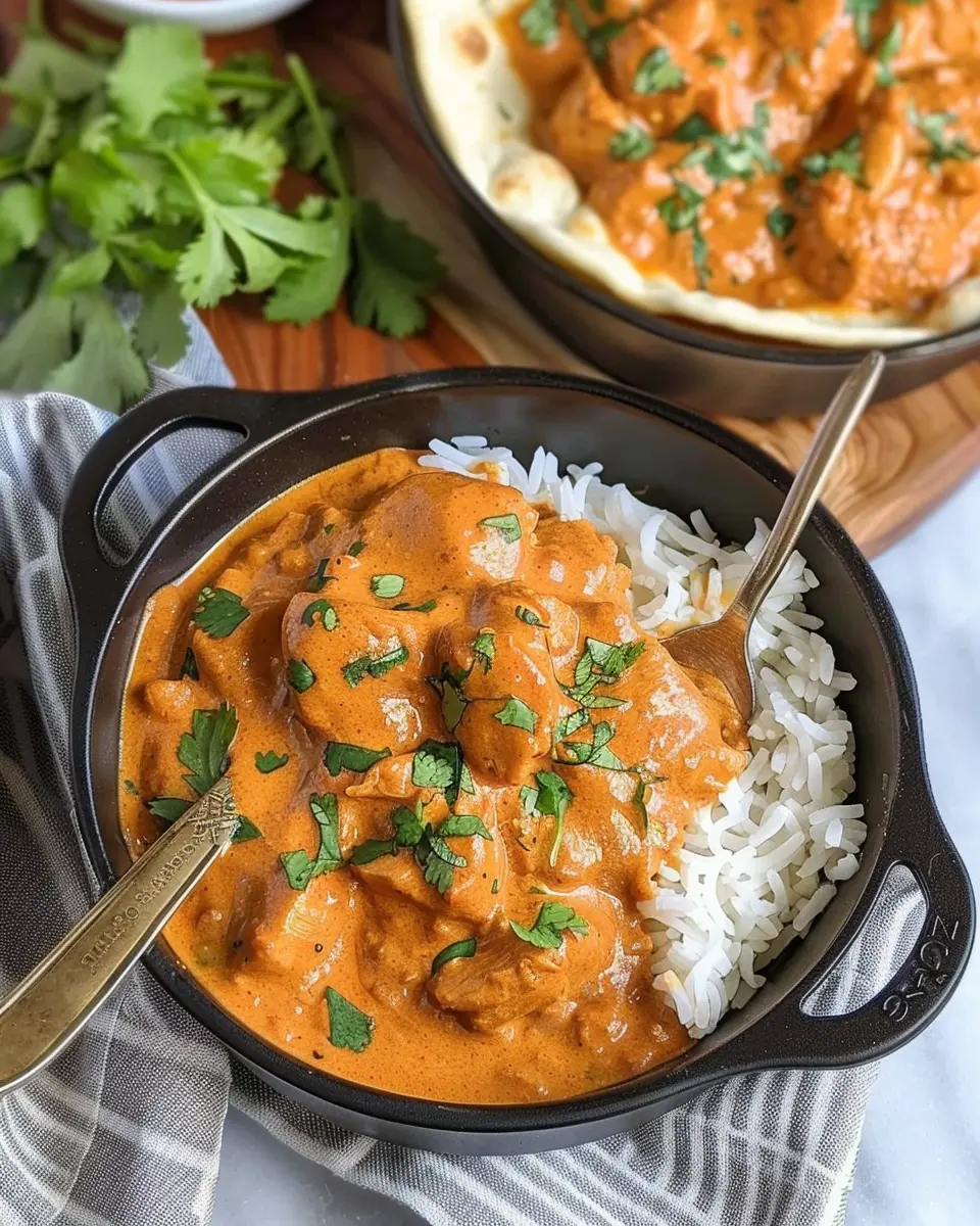 Garnish your butter chicken with extra cilantro and serve it hot for maximum enjoyment.