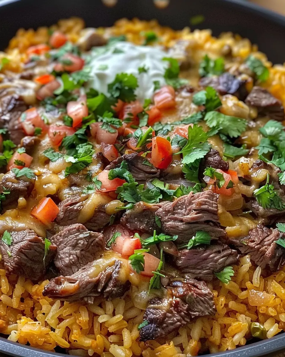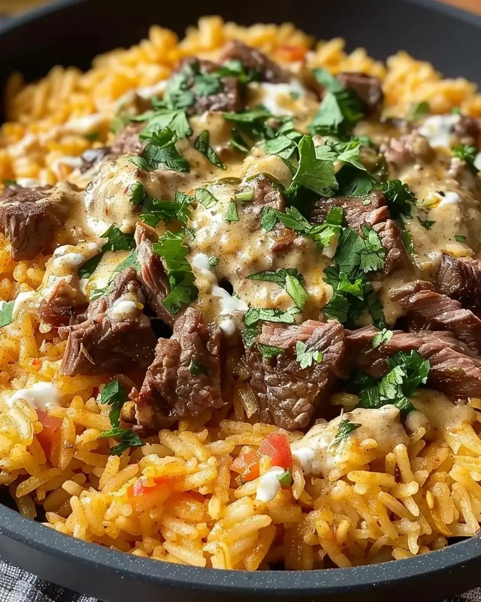 PrintSteak Queso Rice: The Best Creamy Fiesta Comfort Dish