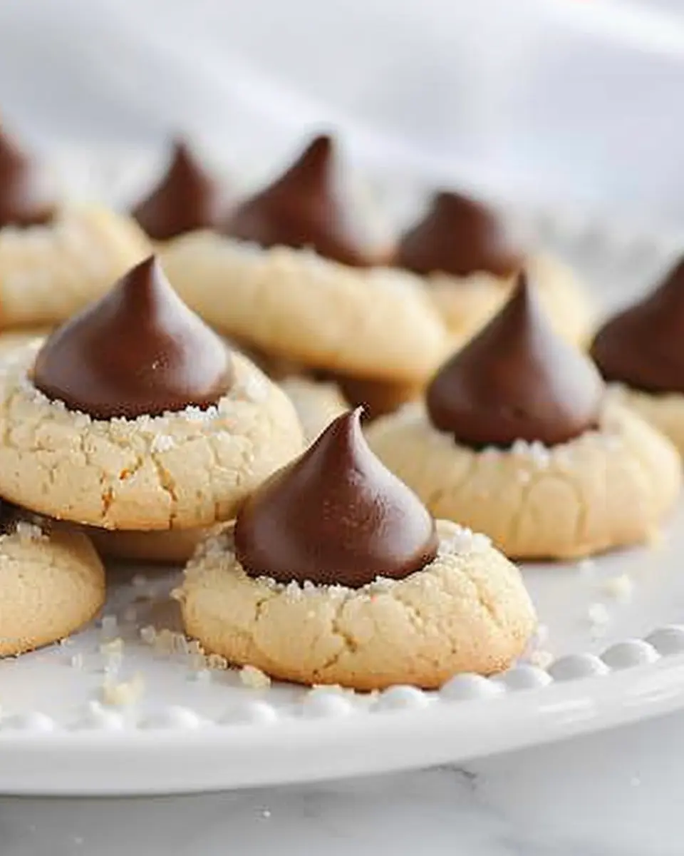 Delightful sugar cookies topped with Hershey Kisses make for an indulgent treat perfect for any occasion.