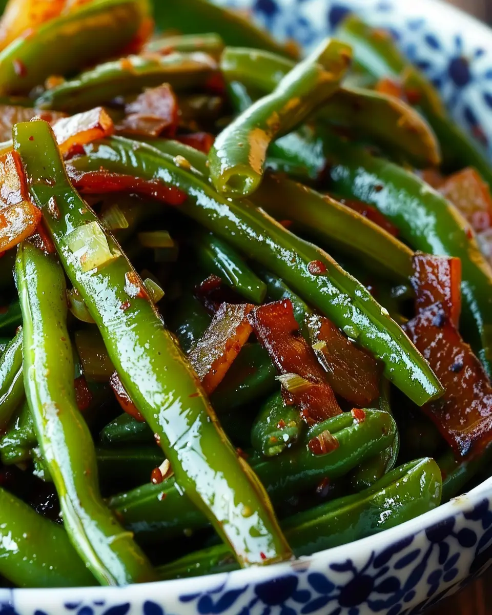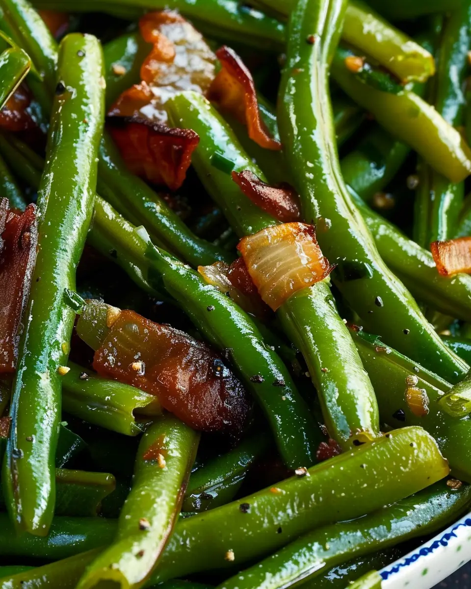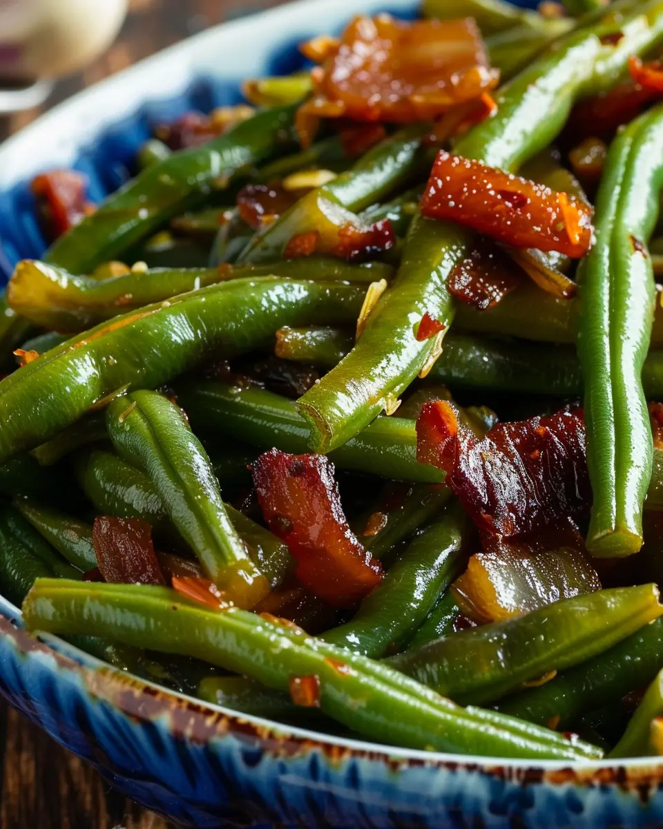 A delightful recipe for Sweet and Sour Green Beans featuring turkey bacon and chicken ham.