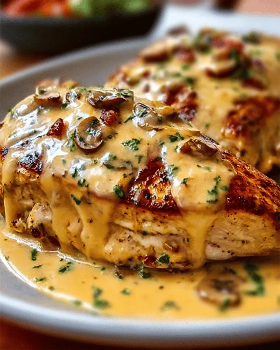 Texas Roadhouse Smothered Chicken is a delightful blend of flavors, featuring tender, juicy chicken topped with melted Jack cheese, Turkey Bacon, and savory toppings. It’s comfort food at its finest, perfect for a cozy evening or a gathering with friends. The creamy sauce and rich toppings elevate this dish to an indulgent experience.