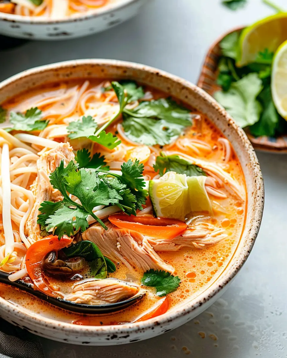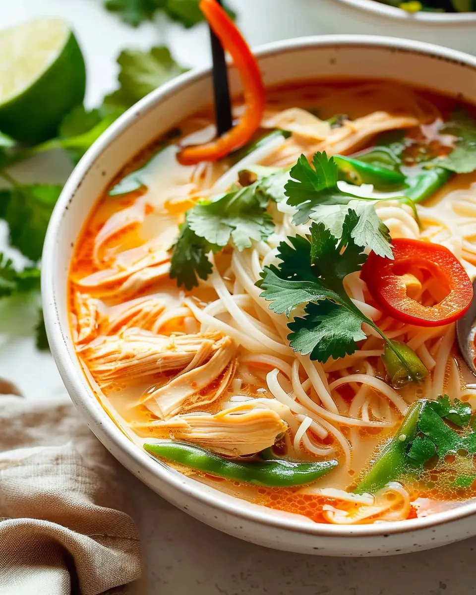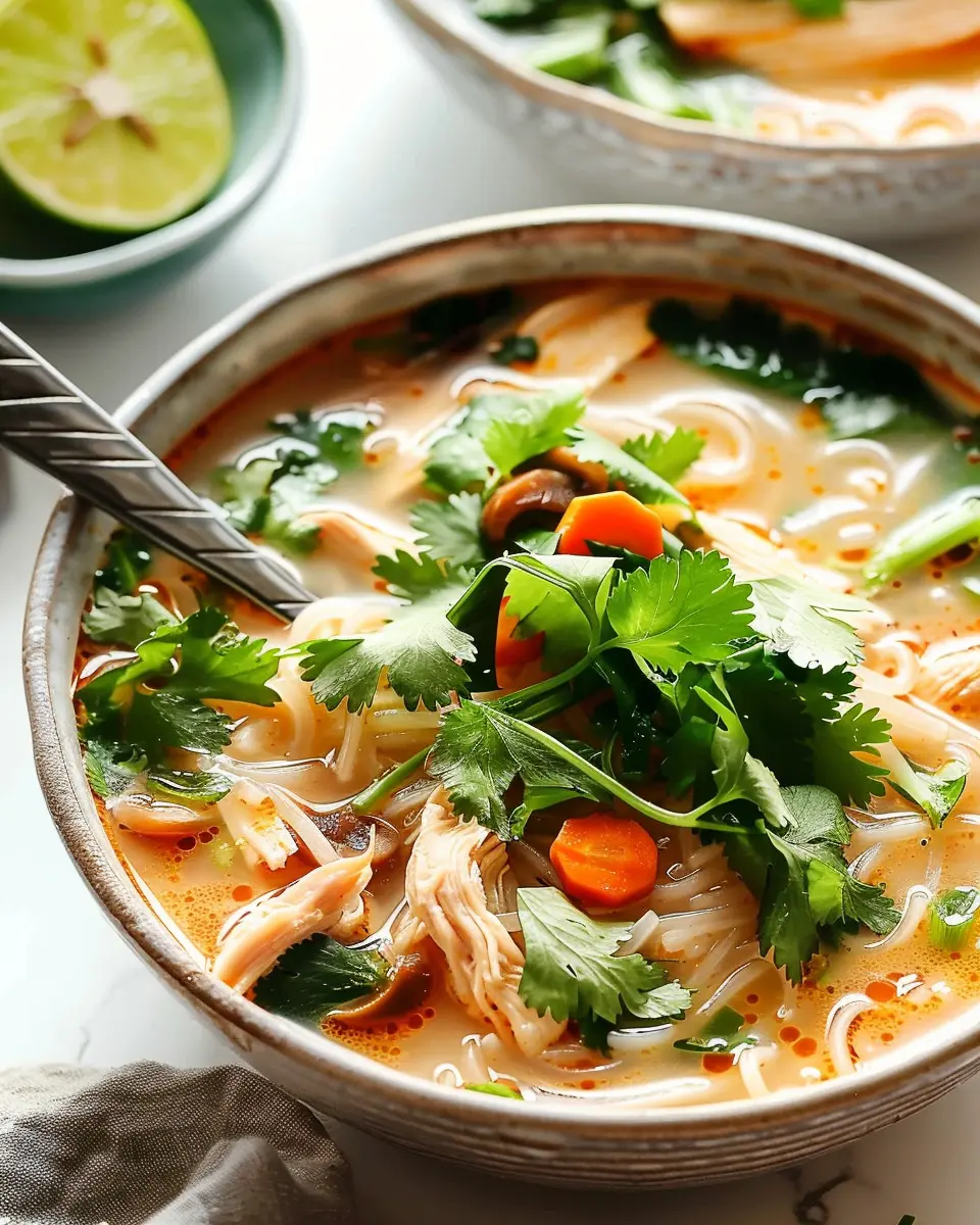 A warm and hearty Thai Chicken Noodle Soup, perfect for cozy nights.