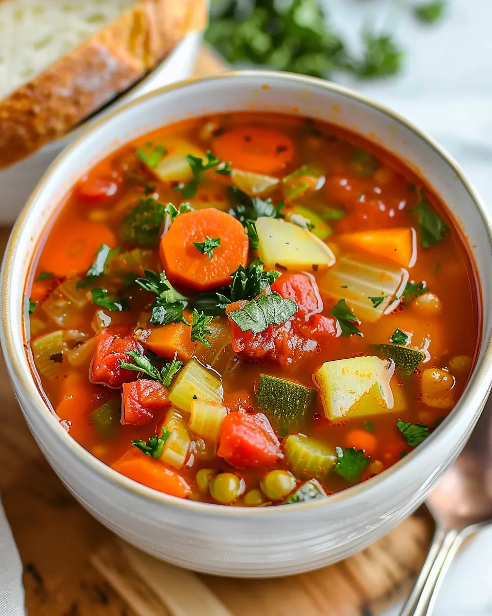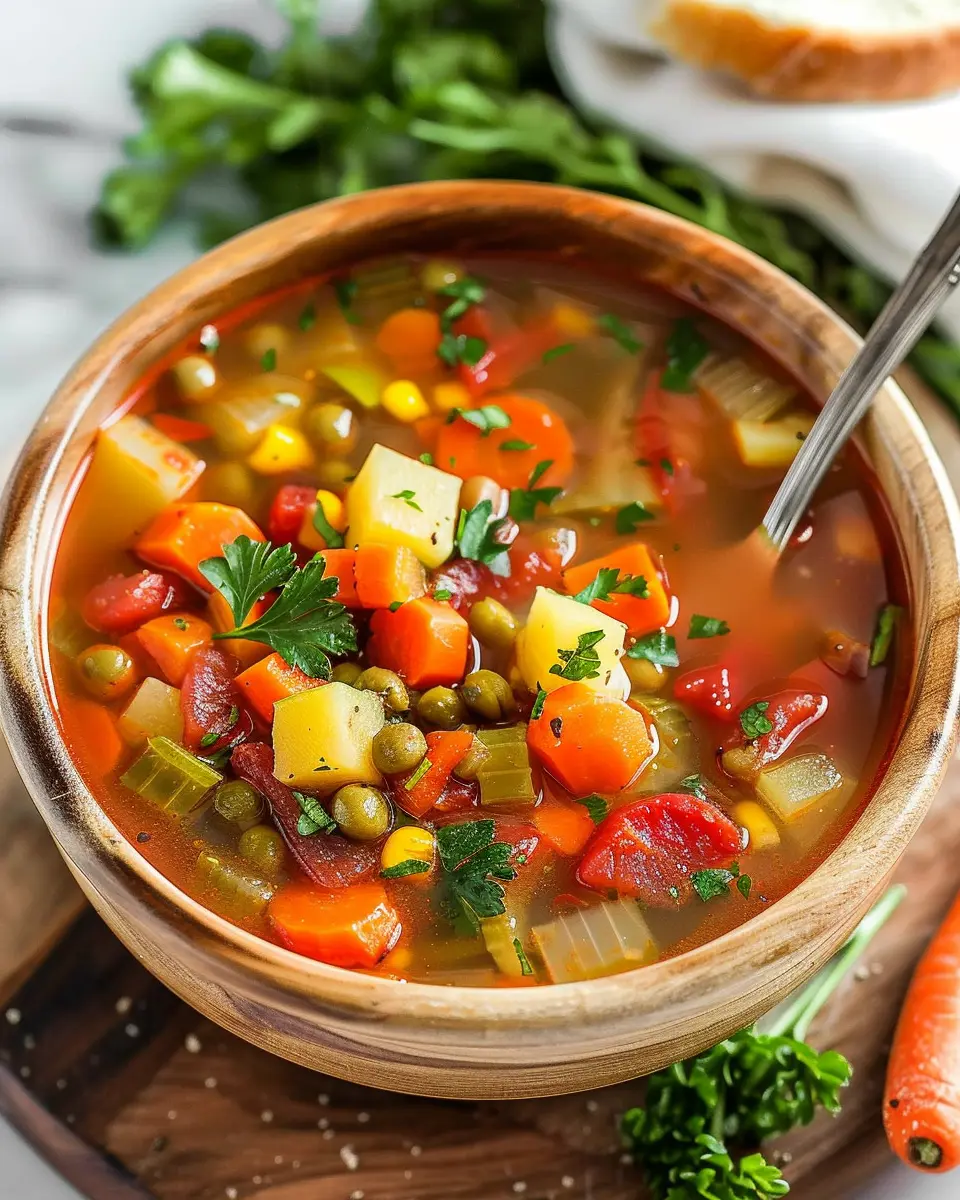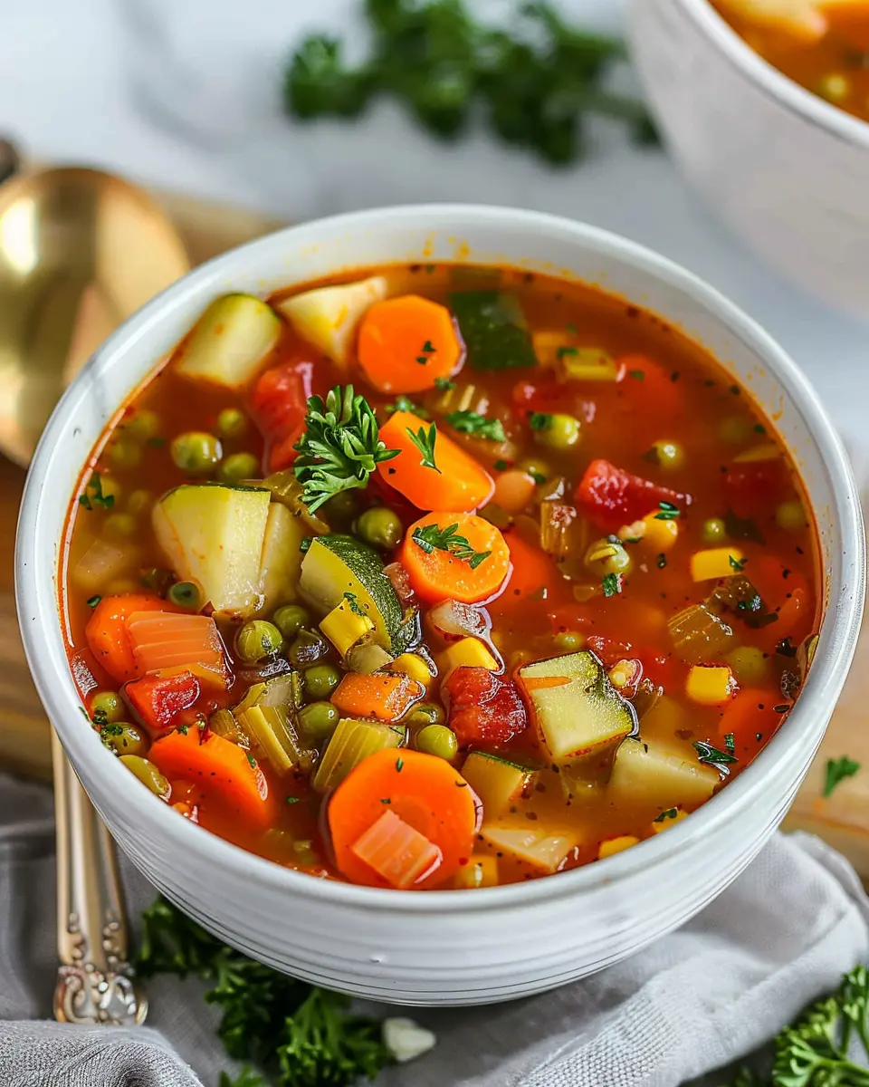 Warm up with a comforting bowl of vegetable soup, perfect for any family dinner.