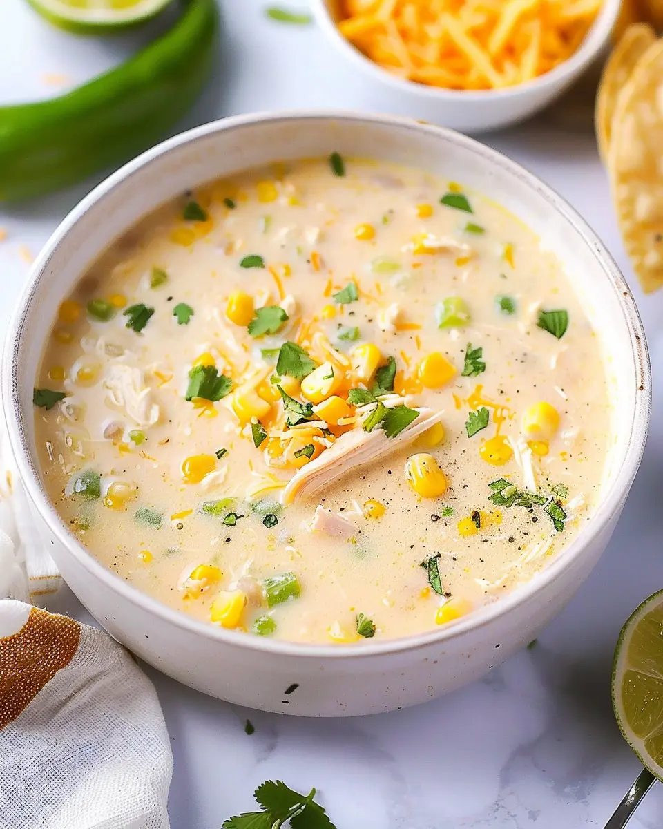 Don’t forget the finishing touches! Elevate your White Chicken Chili with Corn with appealing garnishes: